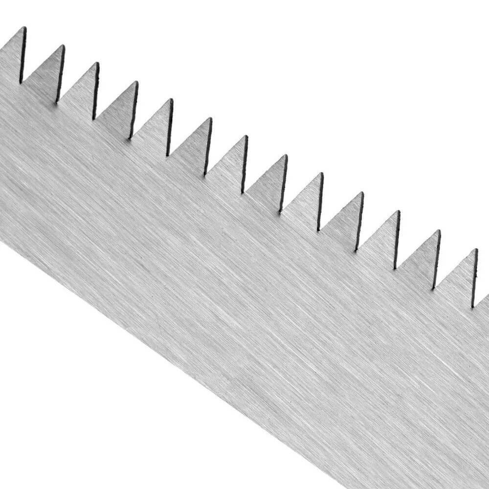 Afiação de Dois Lados dos Dentes: A característica distintiva desta serra é a afiação de dois lados dos dentes, permitindo cortes eficientes em qualquer direção. Isso é particularmente útil ao trabalhar com drywall, onde cortes precisos e formas complexas são frequentemente necessários. Os dentes temperados cortam facilmente através das placas de gesso, proporcionando cortes limpos com mínimo esforço.