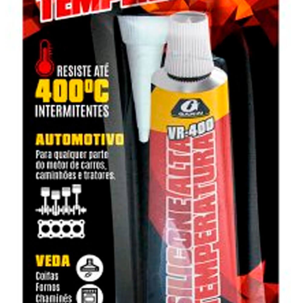 Silicone VR-400 Alta Temperatura é indicado para a montagem de motores em geral, bombas de gasolina, câmbios, equipamentos de refrigeração, radiadores ou para substituição de juntas para vedação. Suporta variações bruscas de temperatura entre -30°C e 300°C contínuas ou 400°C de pico. Boa tolerância a ácidos e solventes.