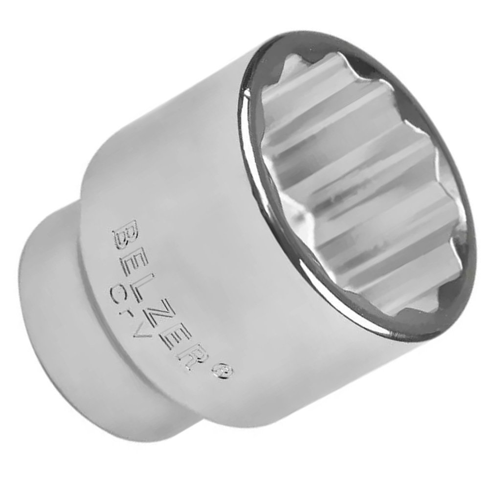 O Soquete Estriado de 1/2" x 30mm da marca BELZER tem o acabamento polido, cromado e niquelado. Feito de Aço Liga Cromo Vanádio; Sua base baixa possibilita melhor pega para sacar o soquete da catraca, e rebaixo na profundidade da porca standard para facilitar o encaixe;