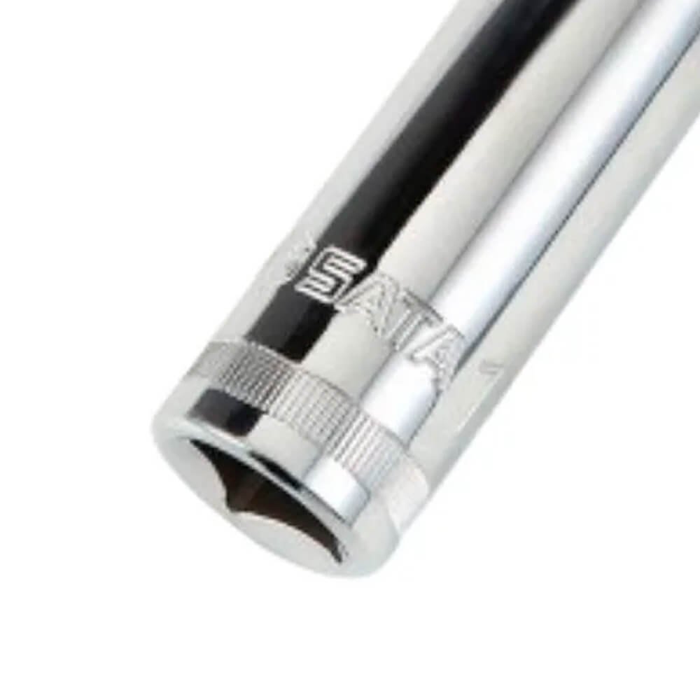 Soquete Sextavado Longo com encaixe de utilizado para afrouxar e apertar parafusos e porcas em conjunto de outros acessórios manuais. Fabricado em Aço Cromo-Vanádio(Cr-V) para maior resistência e durabilidade com acabamento cromado polido para mais segurança. Possui área interna em perfil arredondado, o que melhora a distribuição de torque e deixa o soquete mais resistente. A espessura da parede dos soquetes foi dimensionada para beneficiar trabalhos em locais de difícil acesso. São identificados pelo encaixe quadrado, e pela boca de perfis sextavados. Atende às normas ASME B107.5M e B107.1