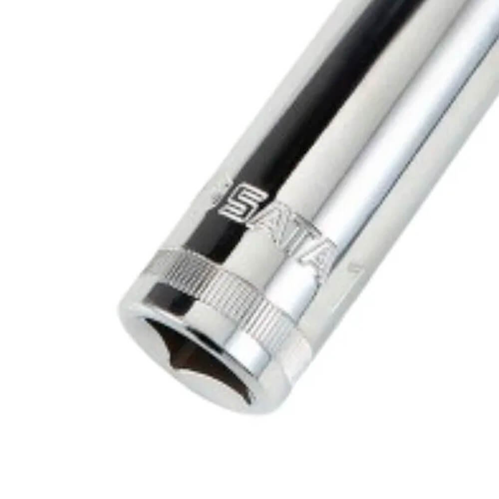 Soquete Sextavado Longo com encaixe de utilizado para afrouxar e apertar parafusos e porcas em conjunto de outros acessórios manuais. Fabricado em Aço Cromo-Vanádio(Cr-V) para maior resistência e durabilidade com acabamento cromado polido para mais segurança. Possui área interna em perfil arredondado, o que melhora a distribuição de torque e deixa o soquete mais resistente. A espessura da parede dos soquetes foi dimensionada para beneficiar trabalhos em locais de difícil acesso. São identificados pelo encaixe quadrado, e pela boca de perfis sextavados. Atende às normas ASME B107.5M e B107.1