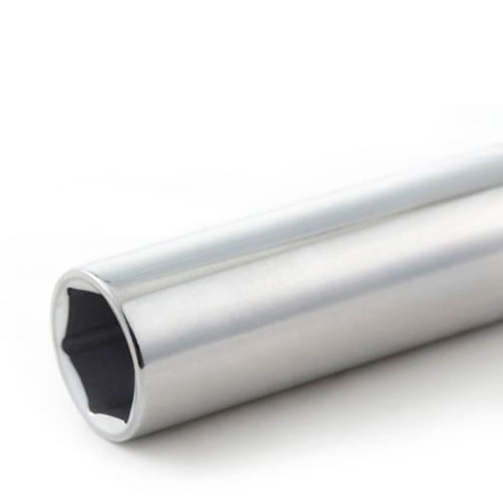 Soquete Sextavado Longo com encaixe de utilizado para afrouxar e apertar parafusos e porcas em conjunto de outros acessórios manuais. Fabricado em Aço Cromo-Vanádio(Cr-V) para maior resistência e durabilidade com acabamento cromado polido para mais segurança. Possui área interna em perfil arredondado, o que melhora a distribuição de torque e deixa o soquete mais resistente. A espessura da parede dos soquetes foi dimensionada para beneficiar trabalhos em locais de difícil acesso. São identificados pelo encaixe quadrado, e pela boca de perfis sextavados. Atende às normas ASME B107.5M e B107.1