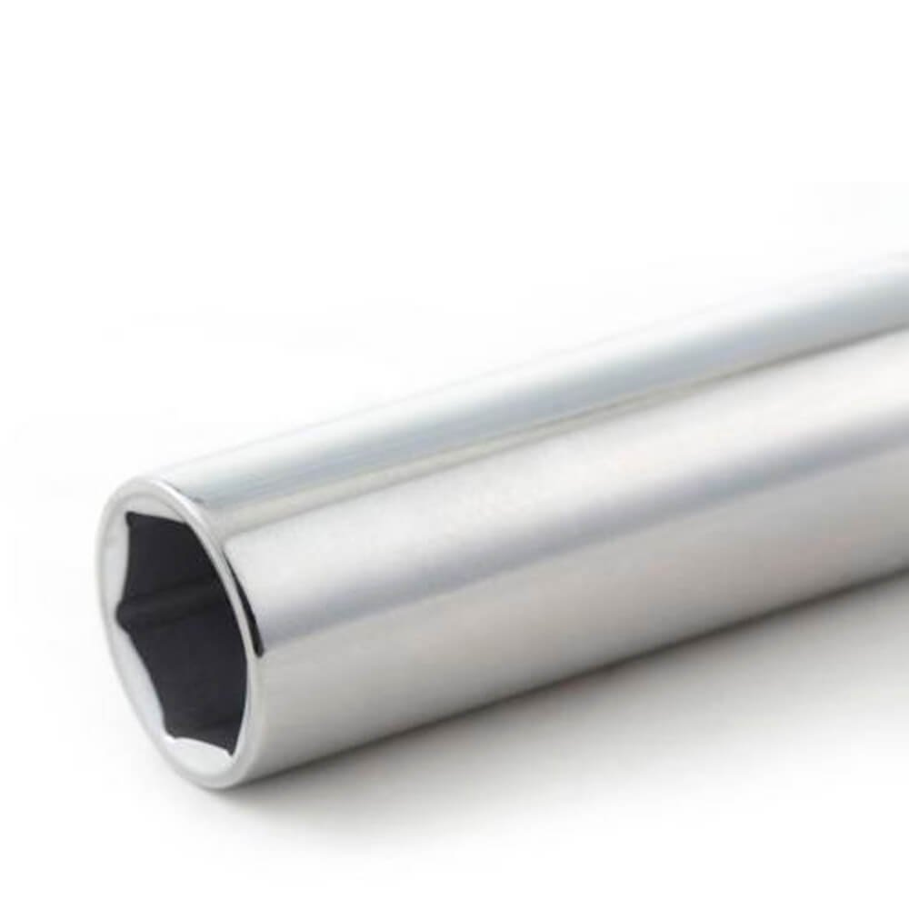Soquete Sextavado Longo com encaixe de utilizado para afrouxar e apertar parafusos e porcas em conjunto de outros acessórios manuais. Fabricado em Aço Cromo-Vanádio(Cr-V) para maior resistência e durabilidade com acabamento cromado polido para mais segurança. Possui área interna em perfil arredondado, o que melhora a distribuição de torque e deixa o soquete mais resistente. A espessura da parede dos soquetes foi dimensionada para beneficiar trabalhos em locais de difícil acesso. São identificados pelo encaixe quadrado, e pela boca de perfis sextavados. Atende às normas ASME B107.5M e B107.1