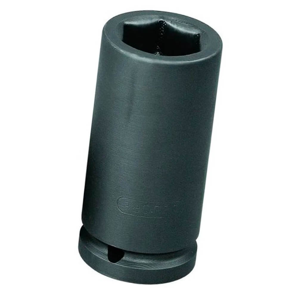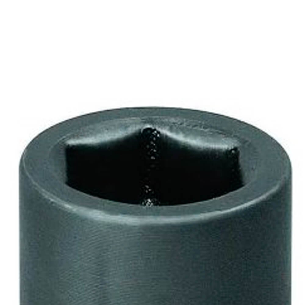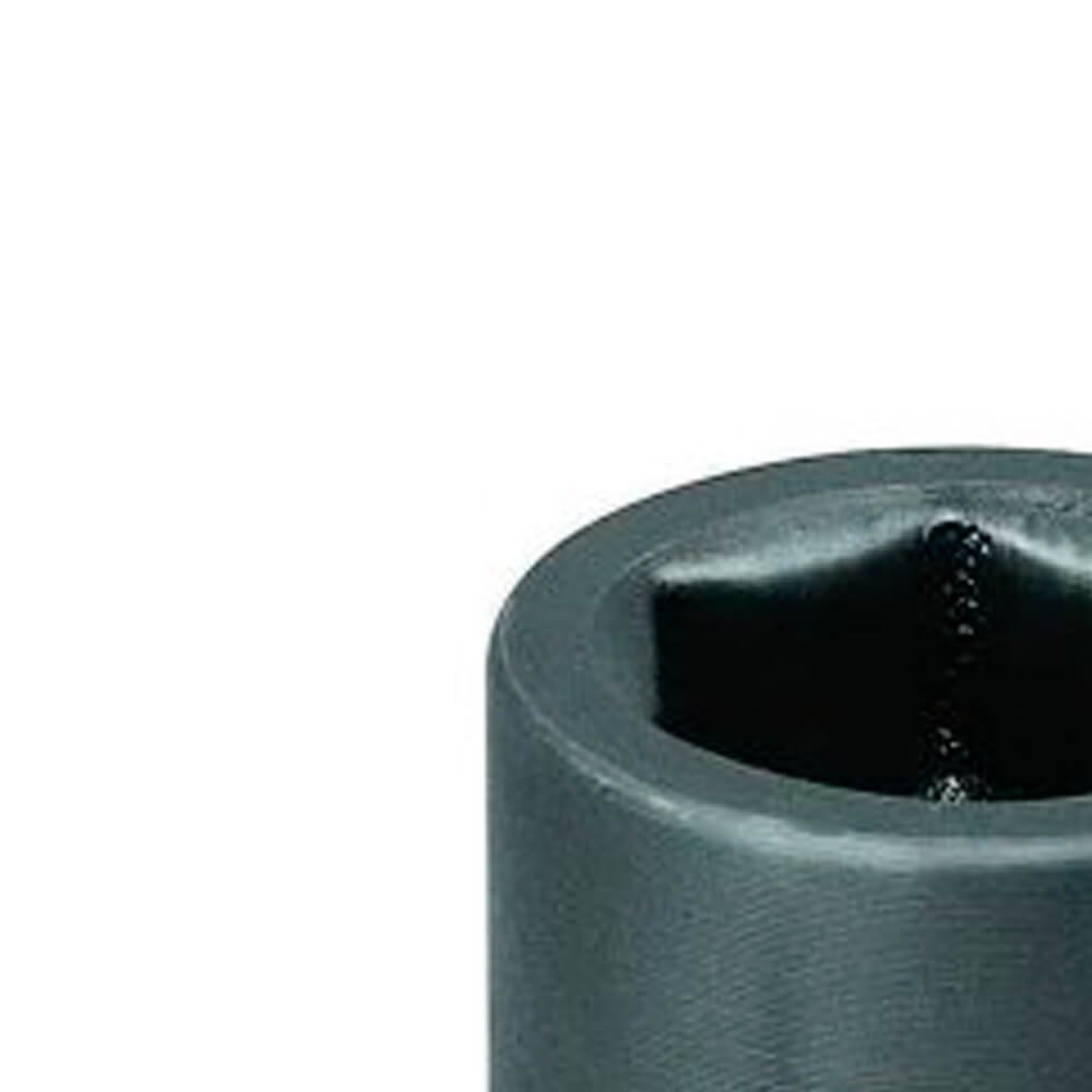Aço-liga de alta resistência mecânica. Acabamento escurecido. Soquete extrarresistente, para trabalhar com máquinas de impacto, com encaixe quadrado externo 12,7 mm (1/2”), conforme DIN 3121 - G 12.5, ISO 1174.