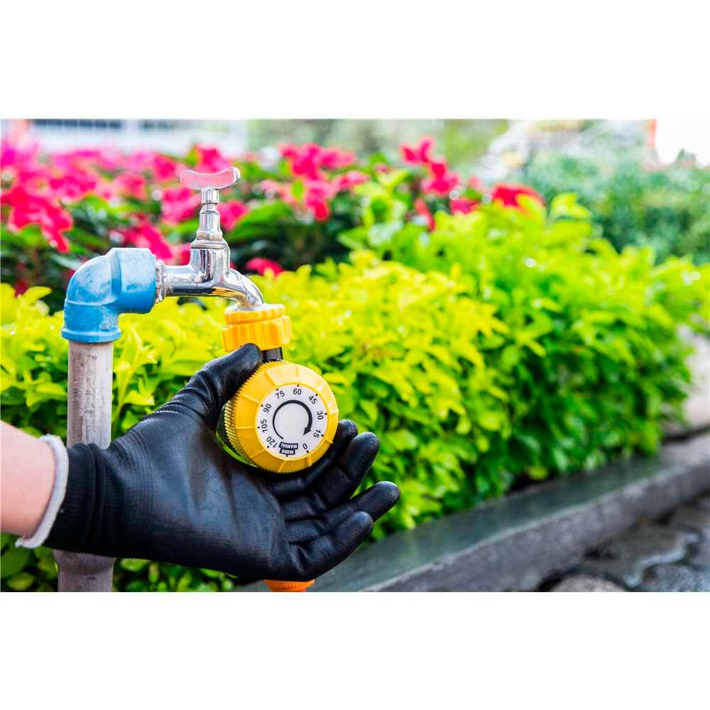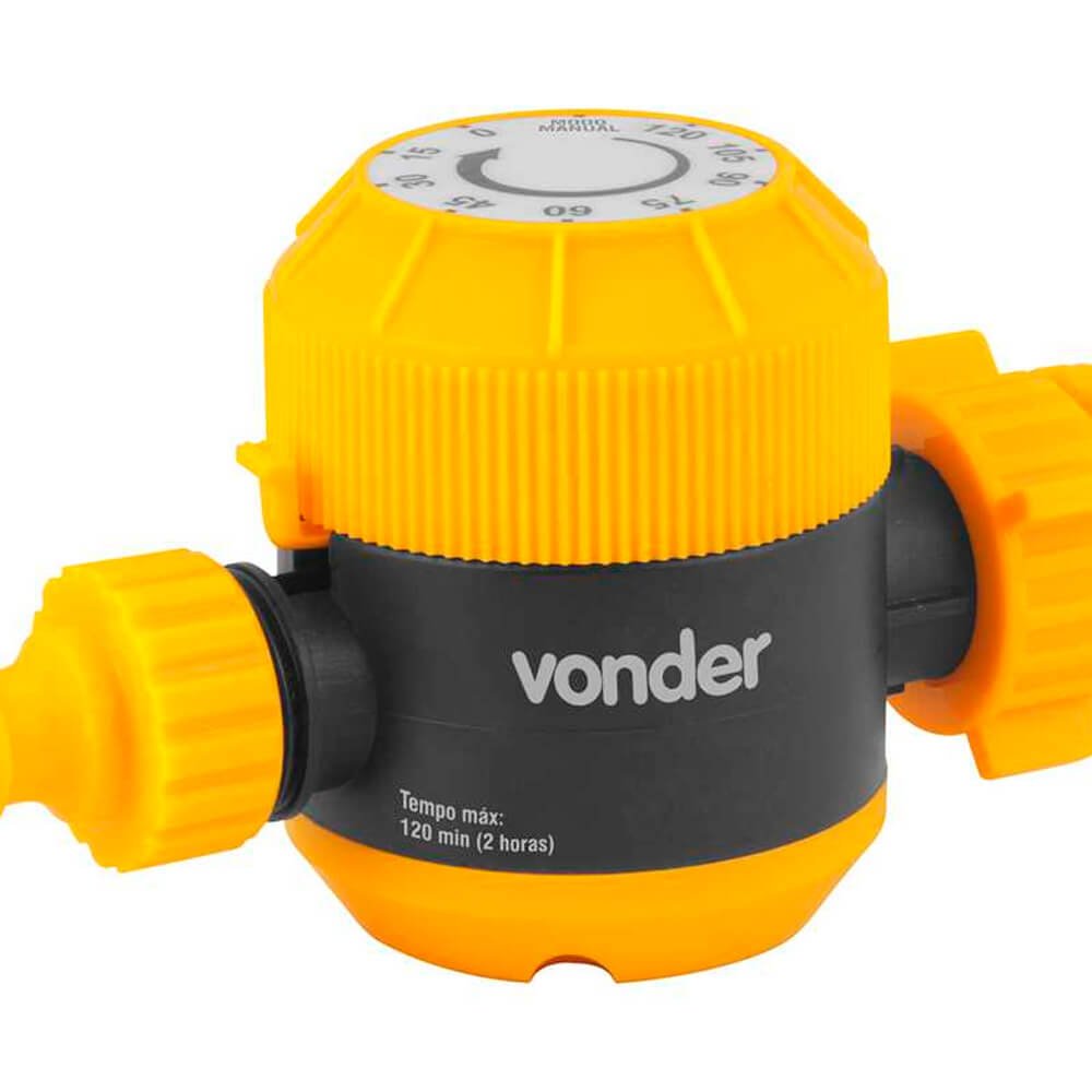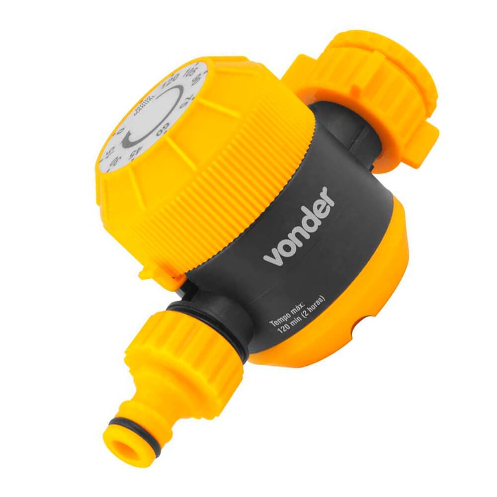 Indicado para programar o tempo da irrigação, sendo ligado diretamente na rede de água. Para programação, basta rotacionar o botão superior conforme o tempo desejado.