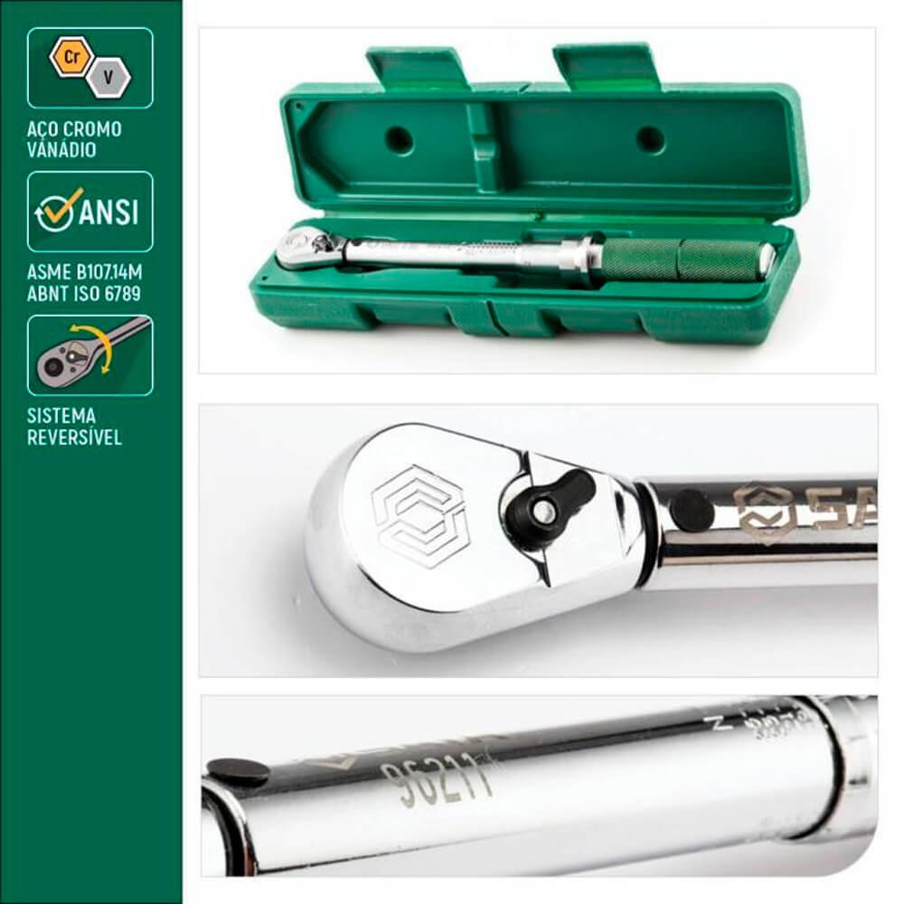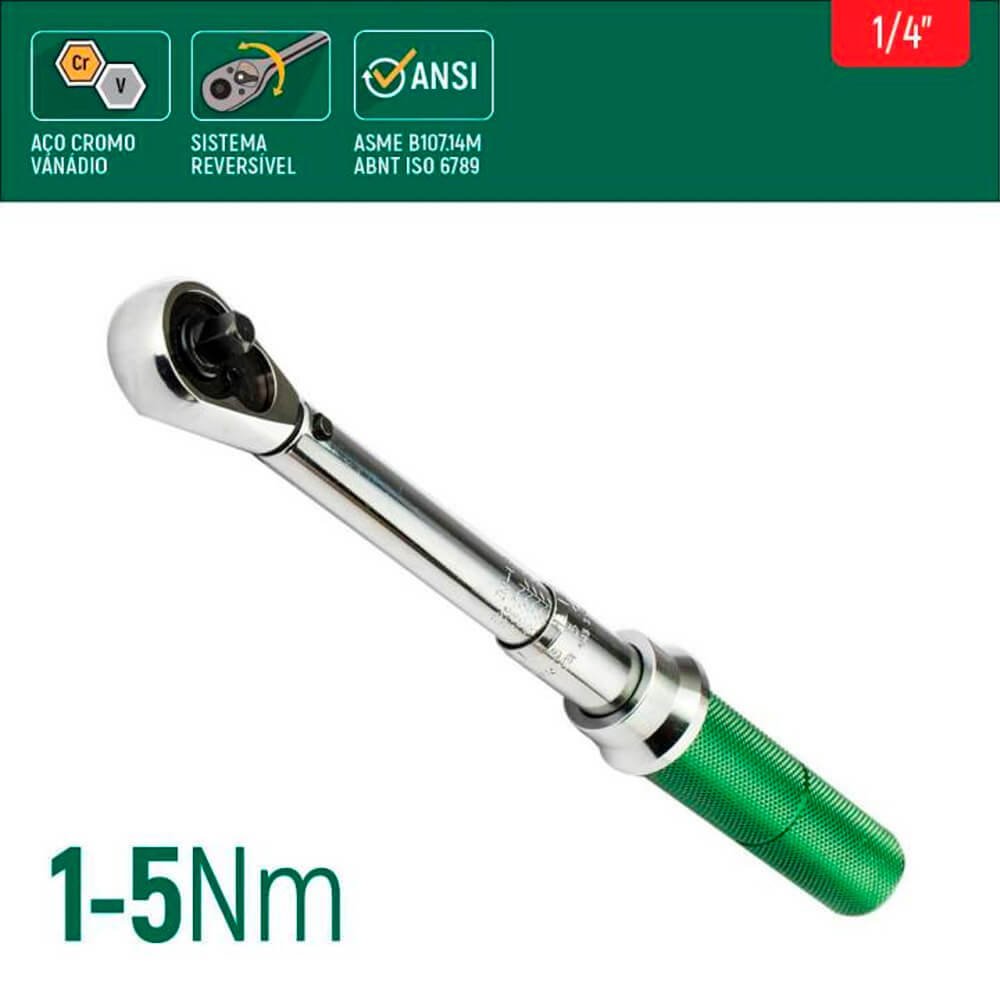 É uma ferramenta que permite controlar, com precisão, a força aplicada (TORQUE) sobre parafusos ou outras peças semelhantes de fixação. Essa ferramenta excelente e reforçada possuí encaixe1/4", com faixa de torque de 1 – 5 Nm e atende as normas ASME B107.14M / ABNT ISO 6789, acompanha certificado e vem em um estojo termoplástico para proteção e transporte. Ideal para mecânicos profissionais exigentes com precisão e qualidade no serviço, que procuram por ferramentas que superem suas expectativas e assegure maior confiabilidade e controle para seus trabalhos diários. São fabricados em Aço Cromo Vanádio (Cr-V) e calibrados por padrões da RBC (Rede Brasileira de Calibração).Possui garantia de 12 meses a contar pela data de compra.