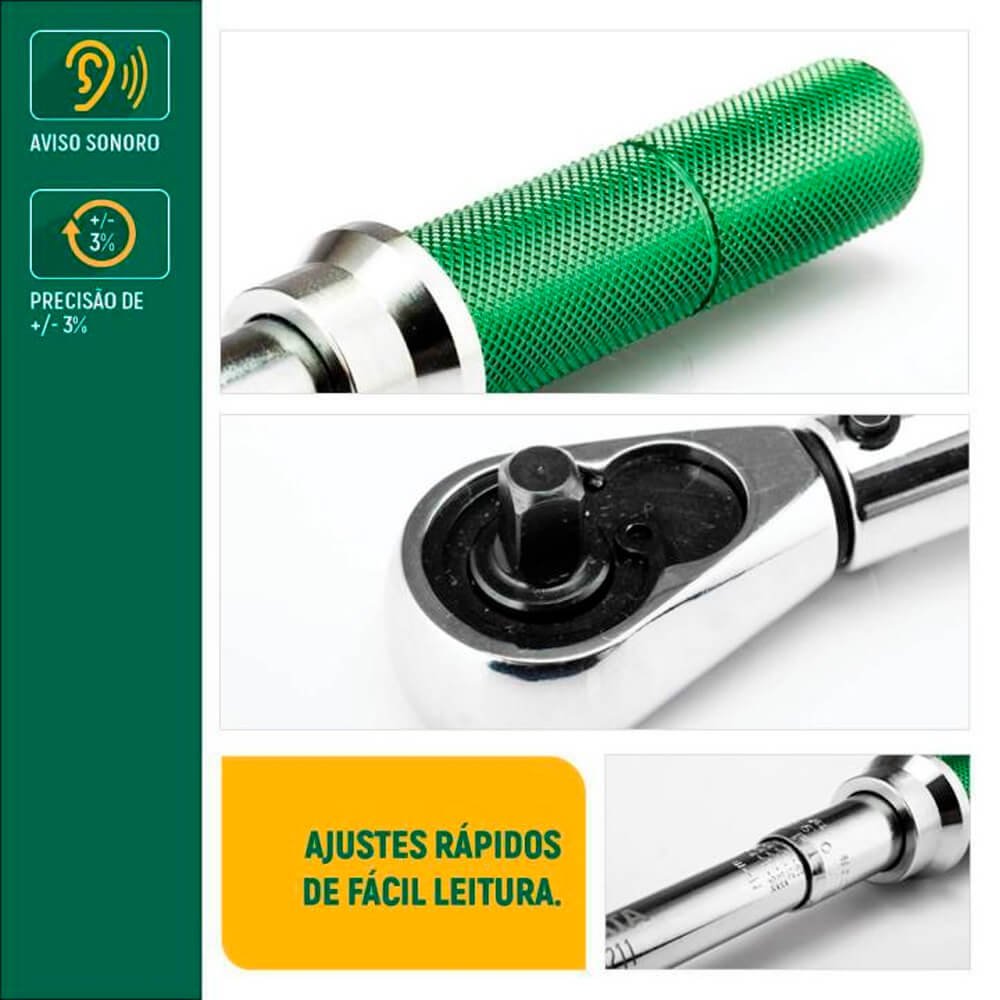 - Possui claro sinal de aviso sonoro ao torque desejado “clack”