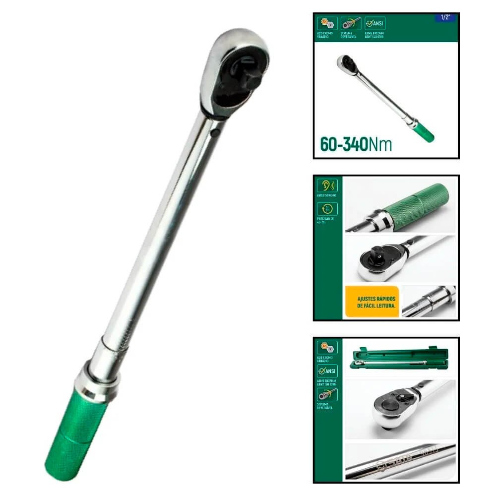 - Utilizado por profissionais para ajustar precisamente o torque de um parafuso em uma porca.Essa ferramenta excelente e reforçada possuí encaixe para ½" polegada com faixa de torque de 68 – 340 Nm e atende as normas ASME B107.14M / ABNT ISO 6789 acompanha com certificado e estojo termoplástico para proteção e transporte.Ideal para mecânicos profissionais exigentes com precisão e qualidade no serviço que procuram por ferramentas que superem suas expectativas. Assegurando ao profissional maior confiabilidade e controle para seus trabalhos diários