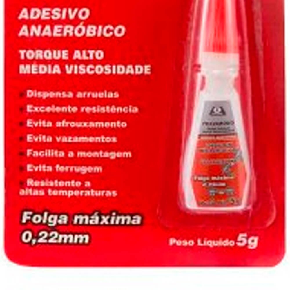 Alto torque de desmonte. Média viscosidade. Adesivo anaeróbico. Baixo odor. Não inflamável. Não seca na embalagem. Não tóxico.