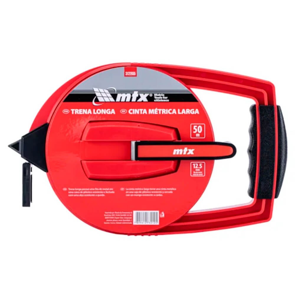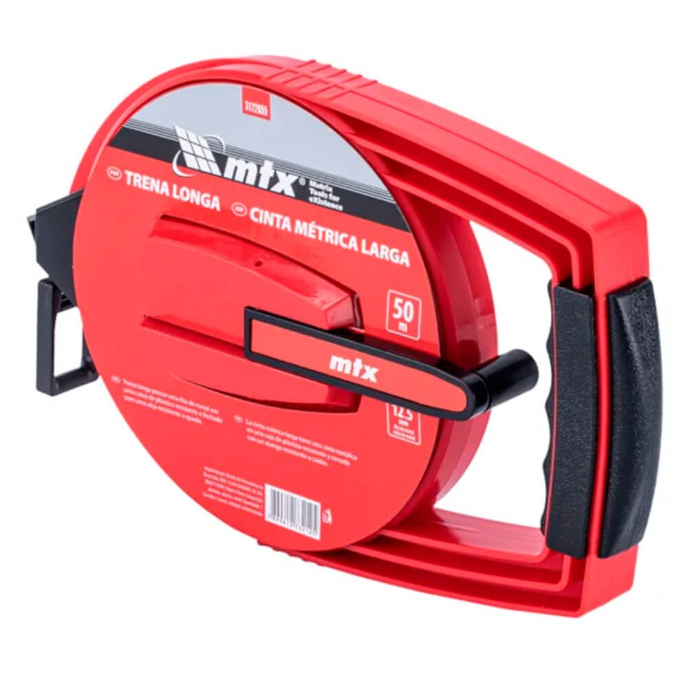 Trena de Aço Longa 50m x 12.5mm Fita Metálica e Estojo Plástico - MTX