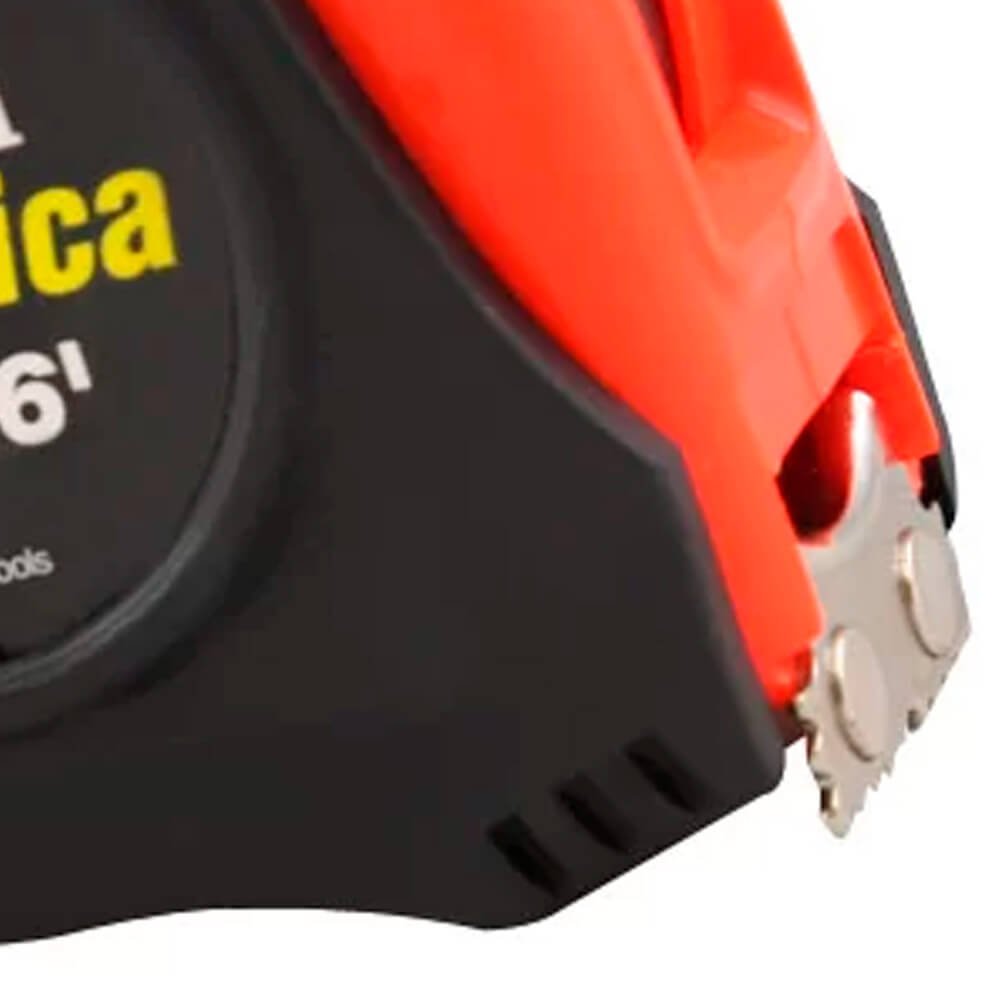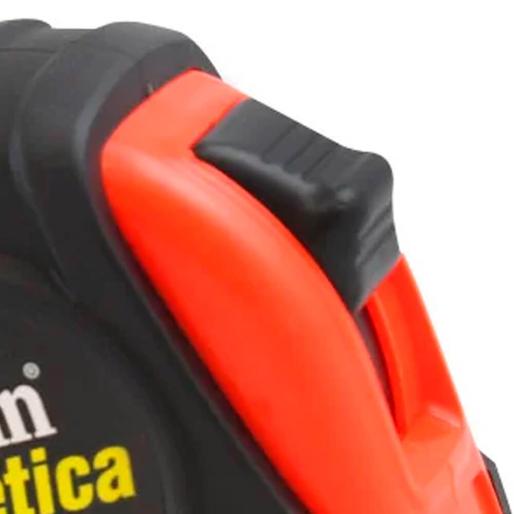 Trena métrica perfeita para utilização em medições de superfícies metálicas, cantoneiras de aço e armações de coberturas metálicas.