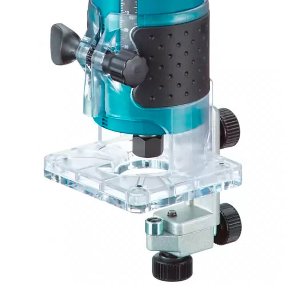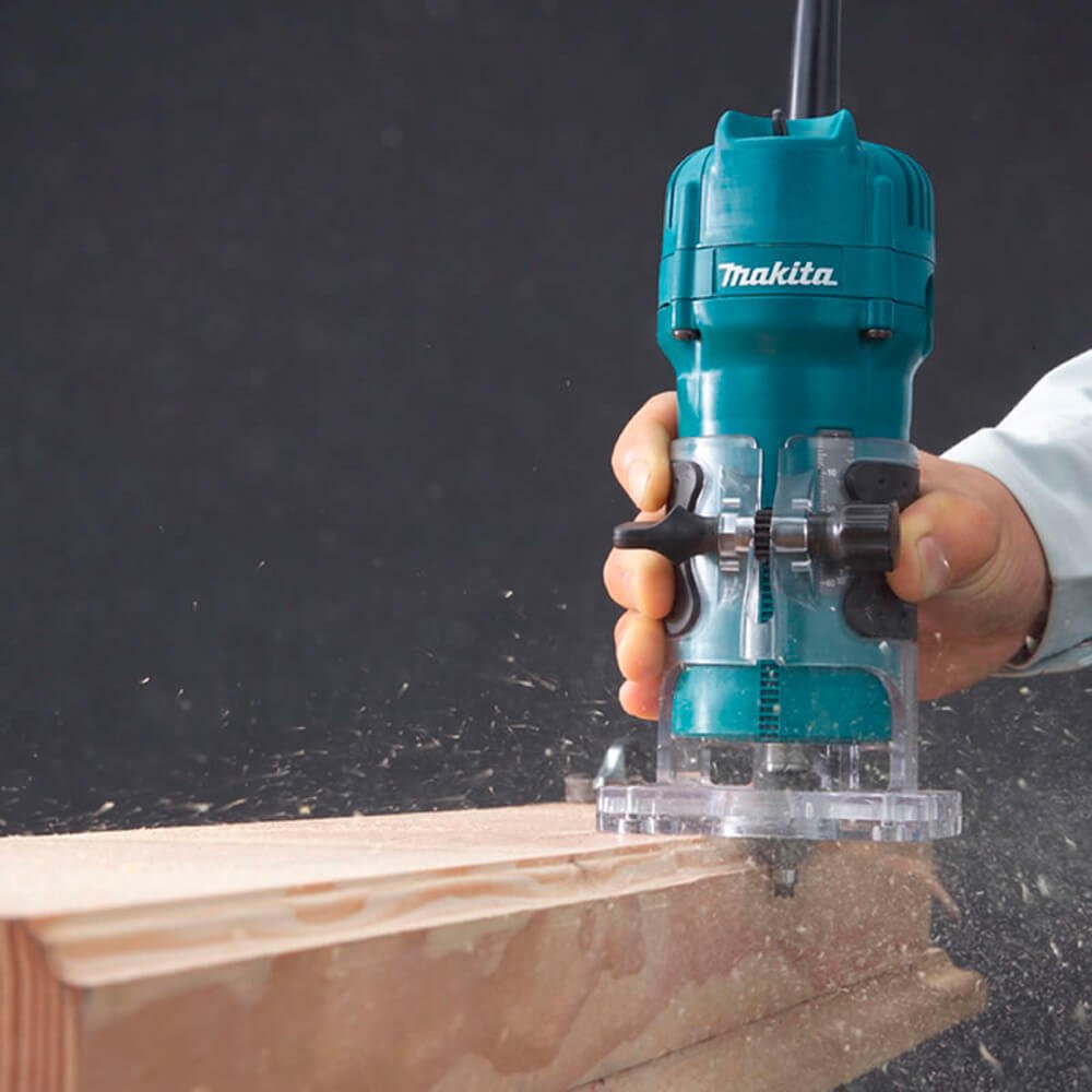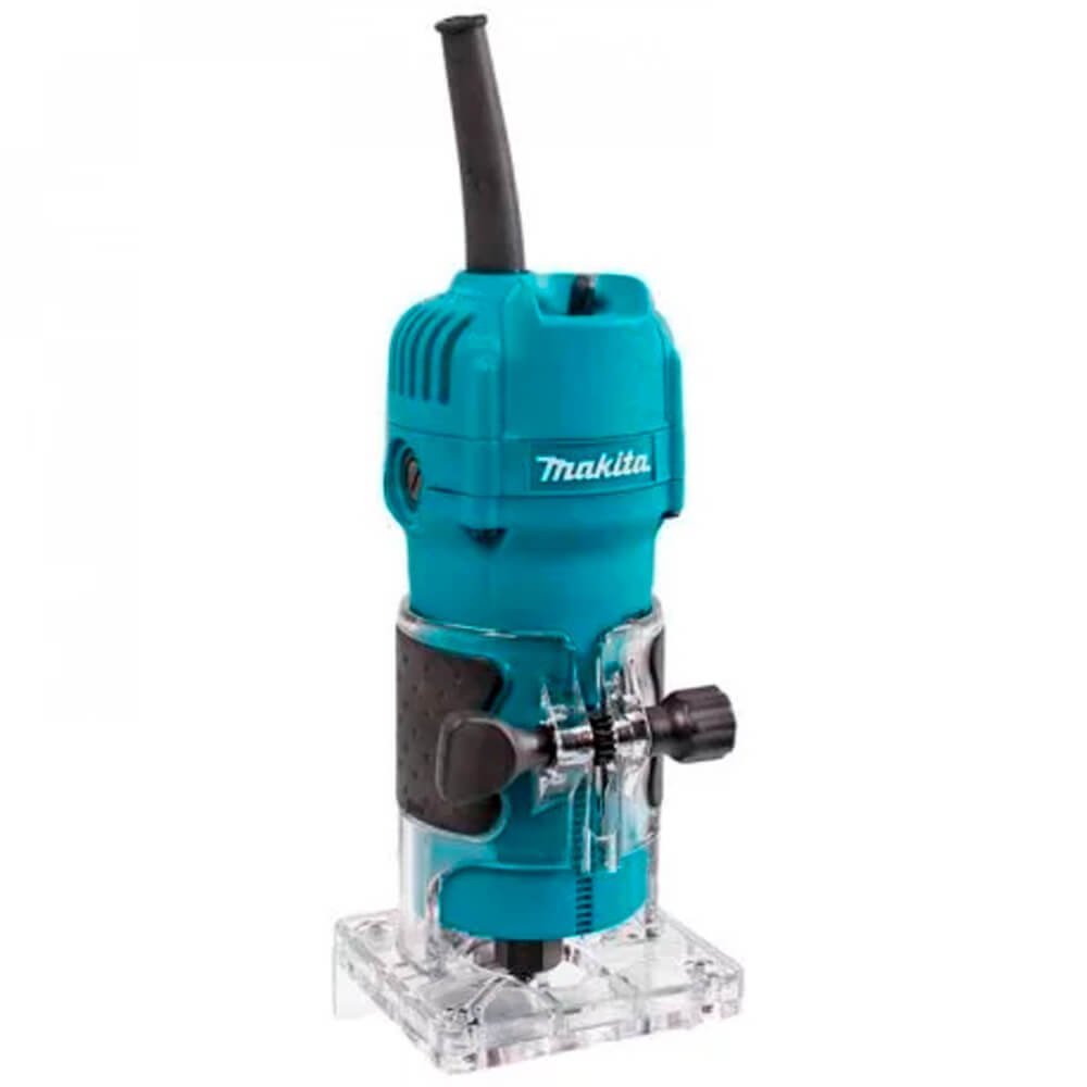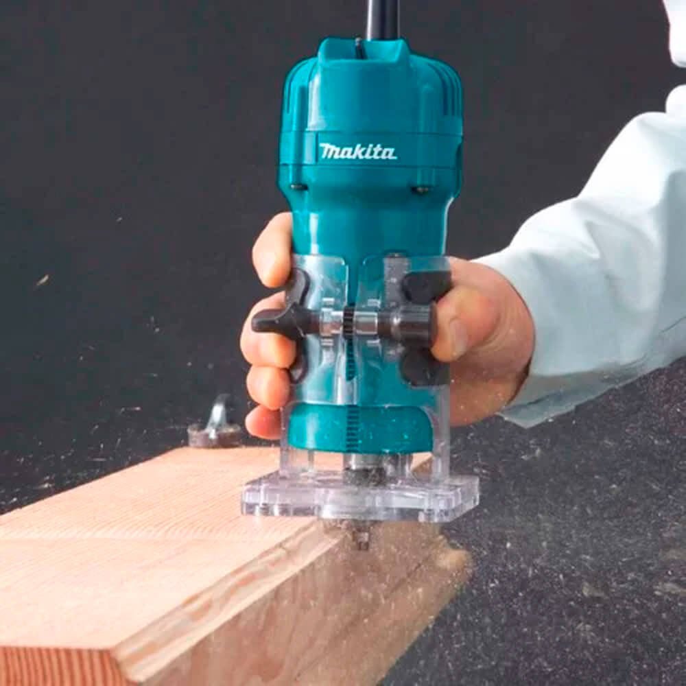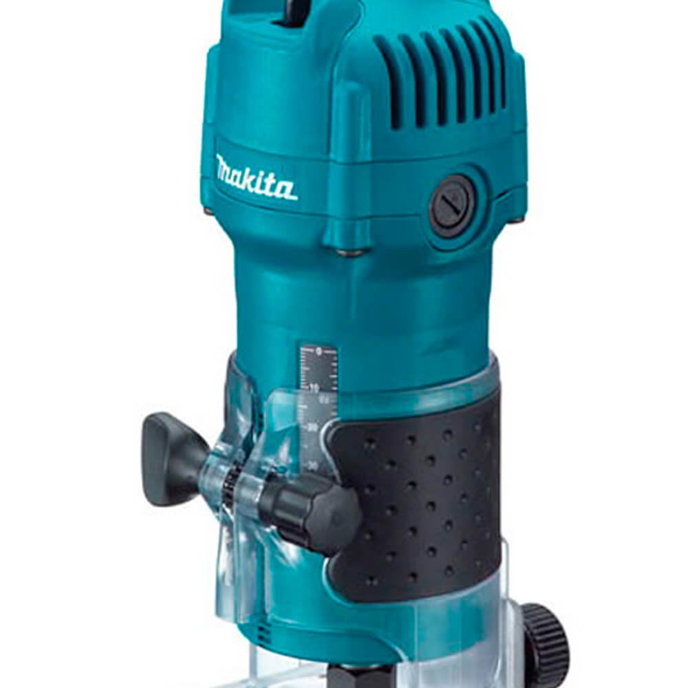 Excelente Tupia Makita que é indicada para aparar e recortar madeira, plástico e materiais semelhantes. Tupia com ajuste de profundidade suave e preciso com mecanismo de pinhão e cremalheira.